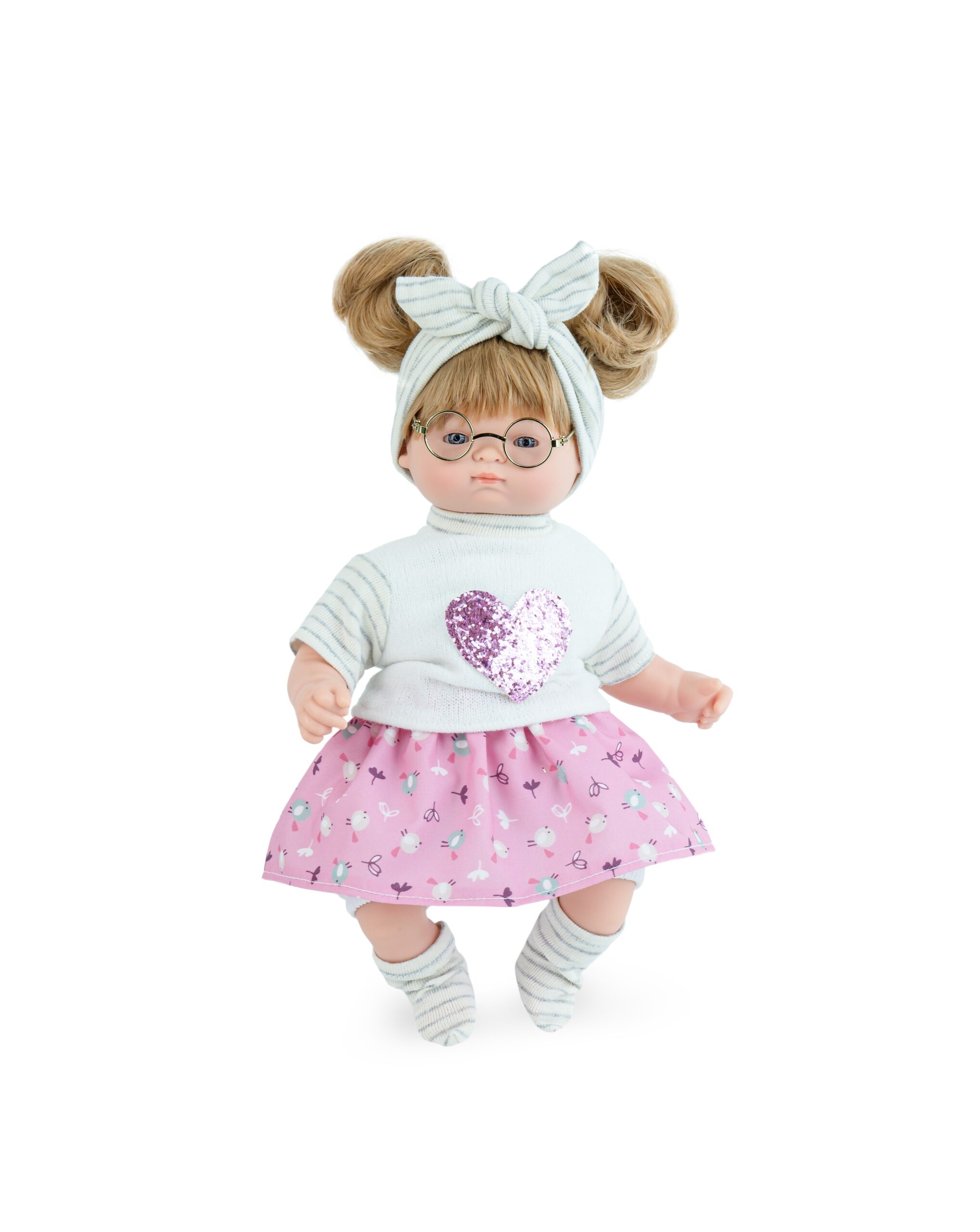 Красив, Автентична испанска кукла Марина & Пау. Има меко тяло с глава, винилови ръце и крака. Тя носи дрехи от качествени материи и е леко овкусена с аромат на ванилия.