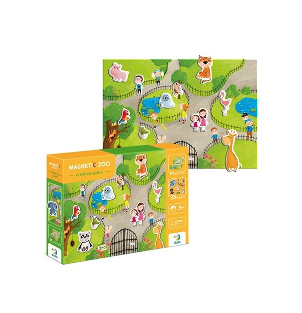 Σήμερα τα παιδιά είναι προσκεκλημένα στον ζωολογικό κήπο! Και όχι σε έναν συνηθισμένο, αλλά σε έναν μαγνητικό. Децата могат да поставят животните на картинката, να μάθουν τα ονόματά τους και να δημιουργήσουν ευφάνταστες ιστορίες. Τι θα συμβεί αν ένα λιοντάρι και ένας ελέφαντας καταλήξουν στο ίδιο μέρος; Θα τσακωθούν ή θα γίνουν φίλοι; Тази игра помага за развитието на фините двигателни умения, της προσοχής και της φαντασίας.