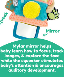 Ο Άρτι η ενυδρίδα κρατάει μια φωτογραφική μηχανή. Είσαι έτοιμος για πόζα; Die schönen, helle Farben, Laden Sie das Baby ein, das Spielzeug zu erkunden und Rasselgeräusche zu entdecken & Reiben aber auch viele verschiedene Texturen. Τραβώντας τους χρωματιστούς κρίκους, ένας κρυφός καθρέφτης ξεπροβάλλει! Ο καθρέφτης βοηθάει το μωρό πώς να εστιάζει, Bilder anzusehen und sein Gesicht zu erkunden. Es ist so konzipiert, dass die kleinen Hände des Babys es leicht halten können und völlig sicher zu beißen sind.!