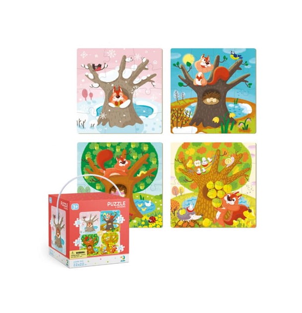 4 Rätsel, die jeweils haben 12, 16, 20, 24 Stücke zum Thema 4 Jahreszeiten. Ένα σετ με παζλ που προσφέρει 4 Schwierigkeitsgrad, έτσι ώστε το παιχνίδι να μπορεί να γίνει πιο δύσκολο. Είναι κατάλληλο για παιδιά ηλικίας 3 ετών και άνω και τα βοηθάει να αναπτύξουν λεπτές κινητικές δεξιότητες, συντονισμό και χωρική σκέψη.