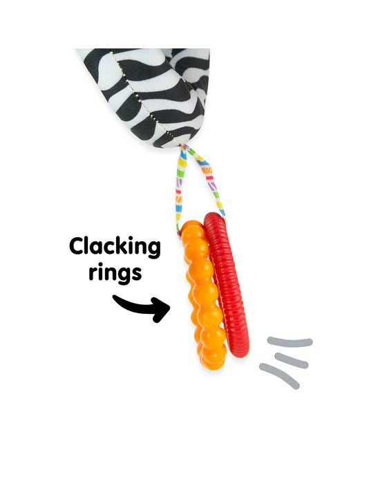 Κρεμαστό παιχνίδι που τοποθετείται στο καροτσάκι ή στο κρεβατάκι του μωρού. Τα φωτεινά χρώματα προκαλούν το μωρό να εξερευνήσει το παιχνίδι και να ανακαλύψει ήχους κουδουνίσματος και τριξίματος. Είναι φτιαγμένο για μικρά χεράκια και είναι ασφαλές για δάγκωμα! Είναι ιδανικό για να ενθαρρύνει το μωρό να φτάνει, να τραβάει και να σφίγγει βοηθώντας στην ενδυνάμωση των μυών.