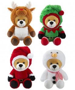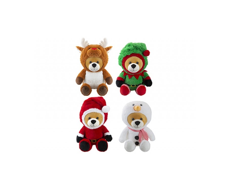 Surprise your child for Christmas with a beautiful teddy bear in a onesie. What will you choose?; Reindeer, elf, Santa Claus or snowman;