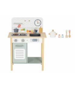 The wooden kitchen turns the game into an exciting creation experience! With realistic design and practical accessories, offers children the joy of being a little chef by enhancing their imagination. The kitchen includes a grill, oven, sink, rotary knobs, storage space for utensils, spoons etc. This game enhances the imagination, the creativity, social skills and develops eye coordination – hand.