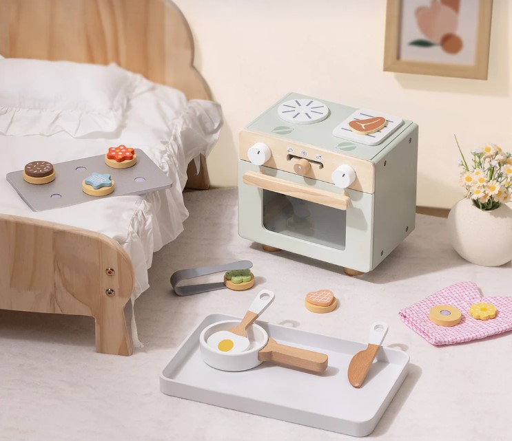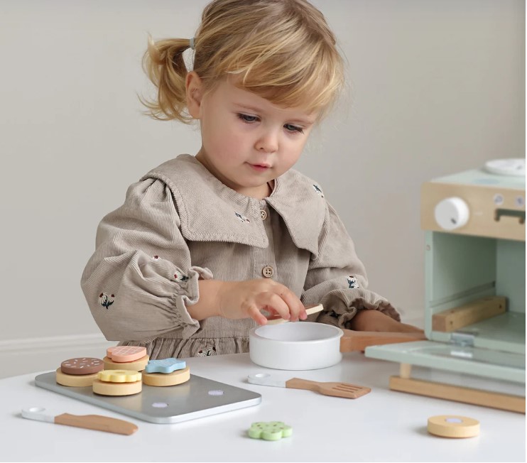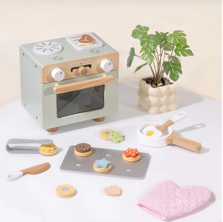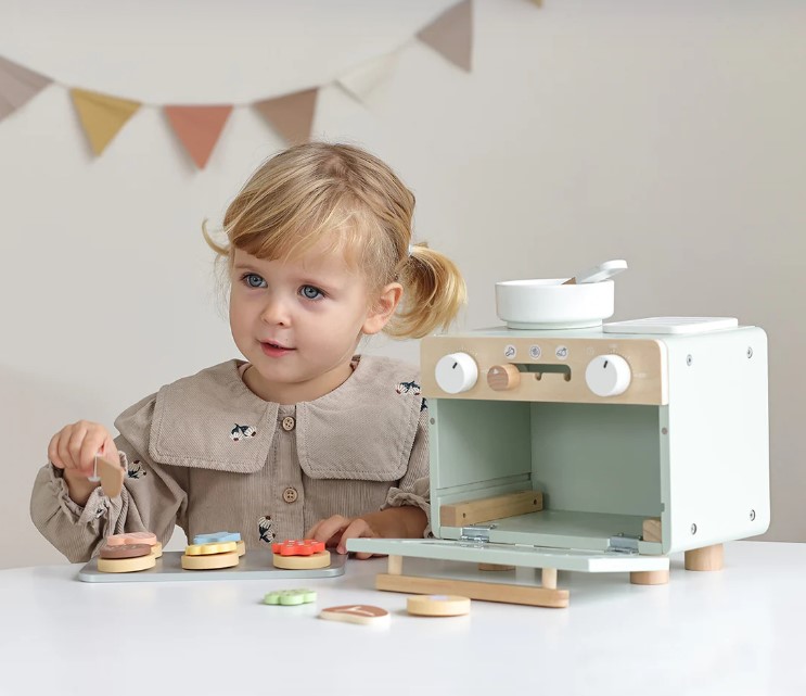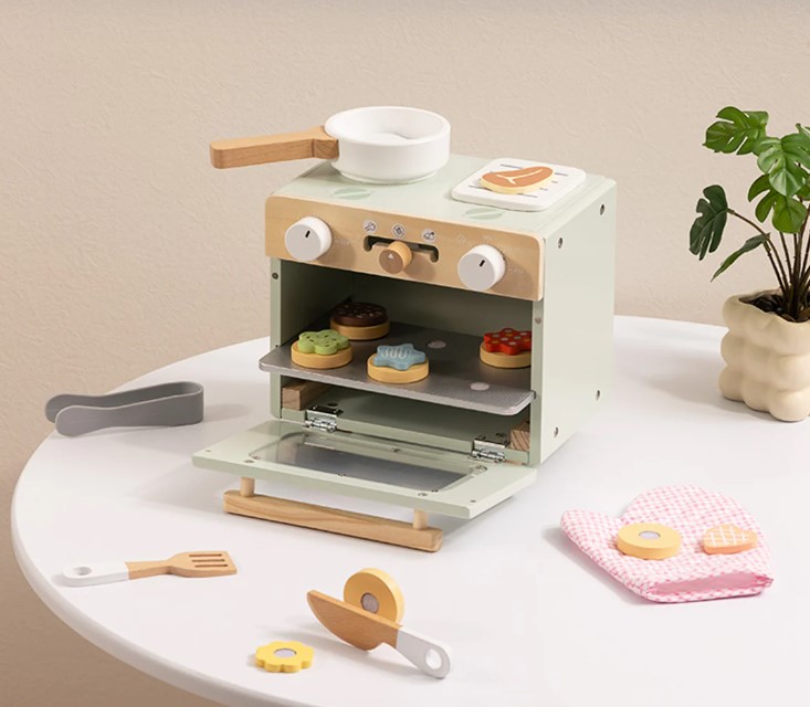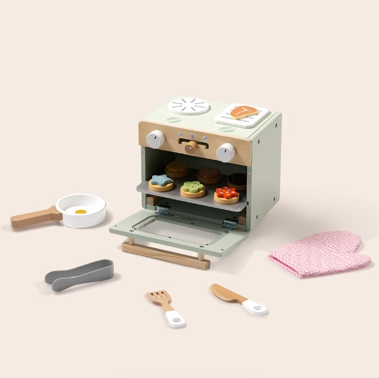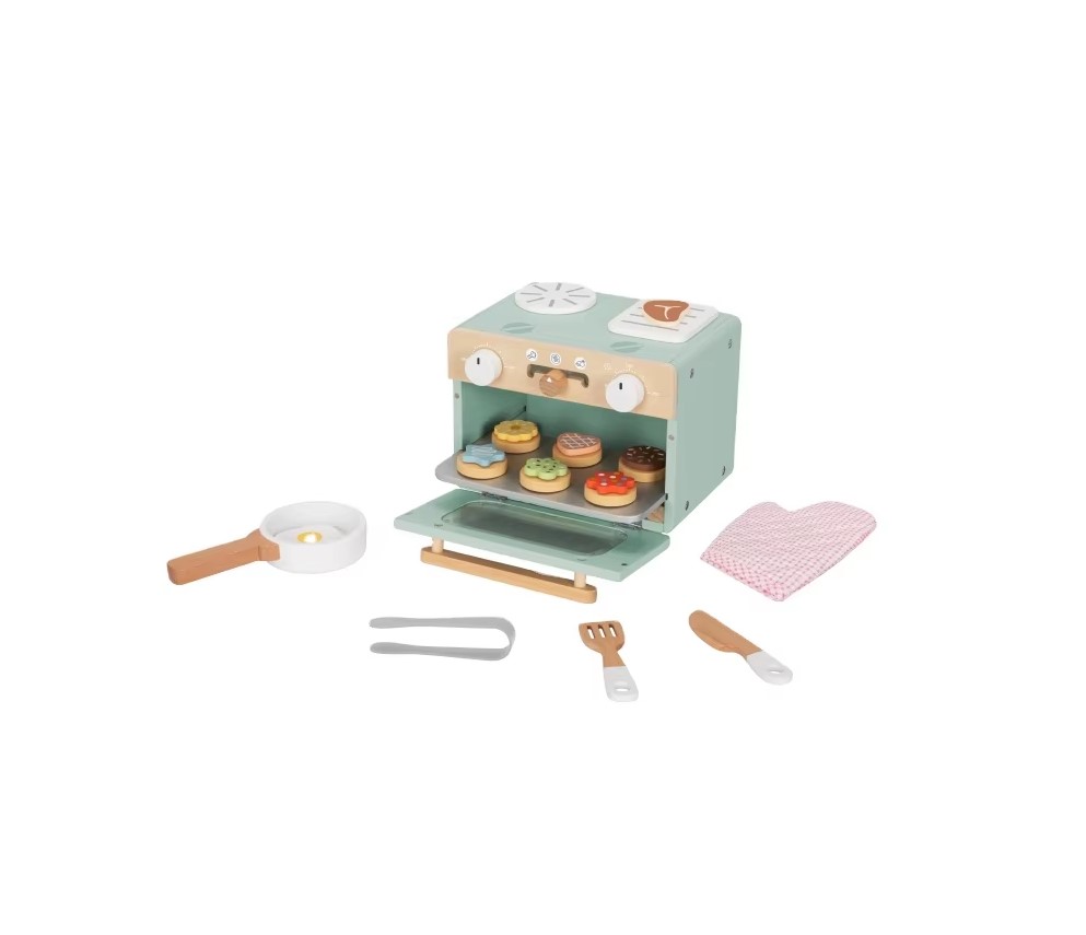 Bake for endless hours with Tooky Toy's cute mini oven. Realistically, playful accessories, such as baking tray, spatula, knife, oven mitt, sweetness, cookies etc. children can bake, to serve and make their own fantastic recipes. This game enhances the imagination, social interaction and fine motor skills.