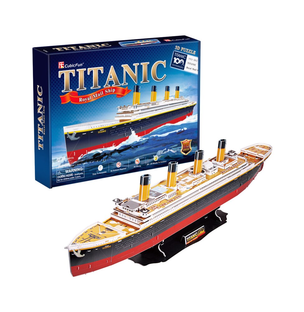 Cubic Fun's 3D puzzle themed around world architecture and ships , specifically the Titanic a British ocean liner that belonged to the White Star Line fleet, which sank in the North Atlantic Ocean on 15 April 1912 after colliding with an iceberg on its maiden voyage from Southampton to New York.