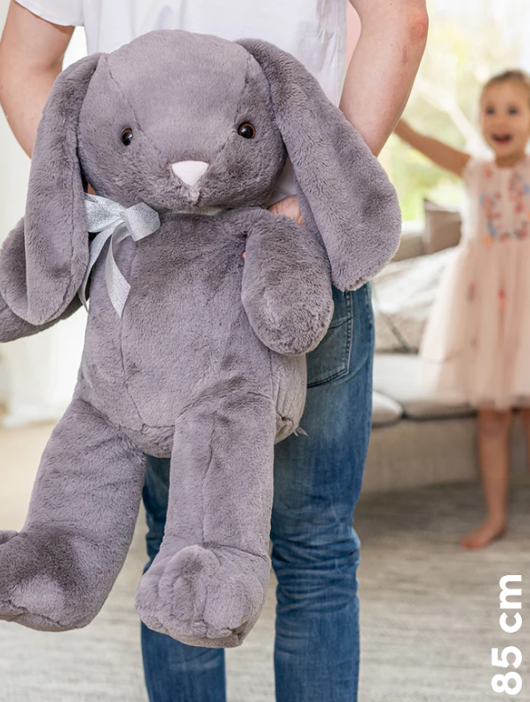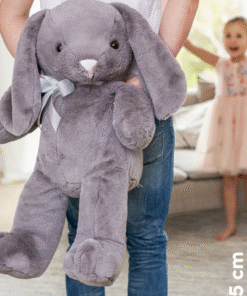 Γνωρίστε την Ολίβια, ένα μεγάλο και χνουδωτό λαγουδάκι! Με εντυπωσιακό μέγεθος 85 εκατοστών και απαλή γκρι γούνα, η Ολίβια είναι ιδανική για αγκαλιές. Η αξιολάτρευτη ροζ μυτούλα της και ο κομψός φιόγκος της την κάνουν ακόμα πιο γοητευτική. Rápidamente se convierte en una amiga leal a través de fantásticas aventuras..