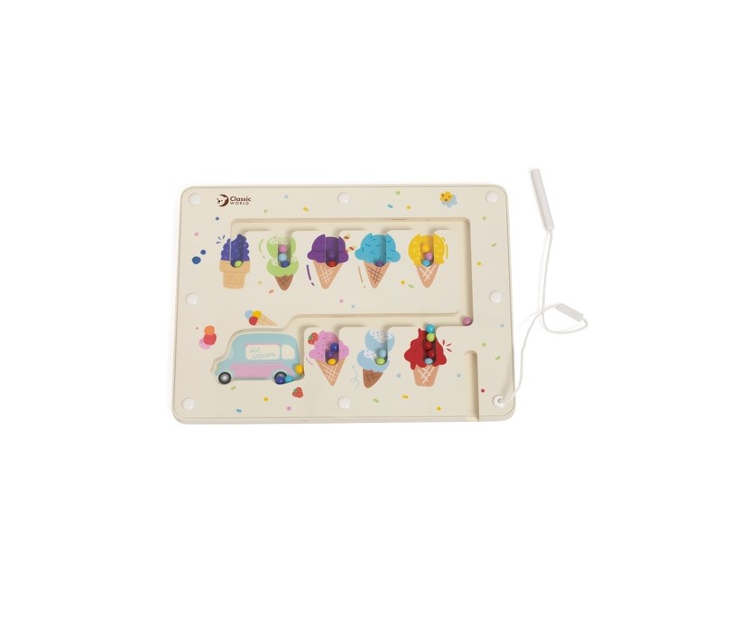 El niño tiene su propio laboratorio de helados., en el que puede poner diferentes colores en conos con el bolígrafo magnético. Aprende colores y ejercita sus manos.!