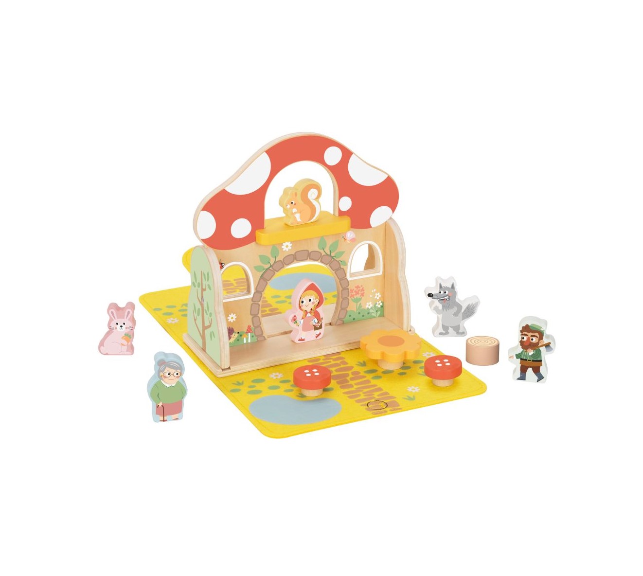 Ζωντανέψτε ένα κλασικό παραμύθι με αυτό το χαριτωμένο σετ παιχνιδιού Κοκκινοσκουφίτσα. Διαθέτει ξύλινο σπιτάκι μεταφοράς με μαλακό εξωτερικό από τσόχα και ξύλινες φιγούρες του παραμυθιού και αξεσουάρ με θέμα το δάσος. Ιδανικό για αφήγηση ιστοριών και παιχνίδι μίμησης, αυτό το σετ ενθαρρύνει τη φαντασία, το παιχνίδι ρόλων και την ανάπτυξη της λεπτής κινητικότητας.