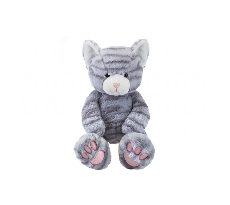 Μια χαριτωμένη γκρι γάτα με ροζ πατούσες και ροζ μύτη, θα γίνει γρήγορα η αγαπημένη φίλη των παιδιών και όσων λατρεύουν τις γάτες. Είναι φτιαγμένη από υψηλής ποιότητας βελούδινο υλικό και με τα ρεαλιστικά χαρακτηριστικά της και την μαλακή υφή της φέρνει χαρά και αγάπη.