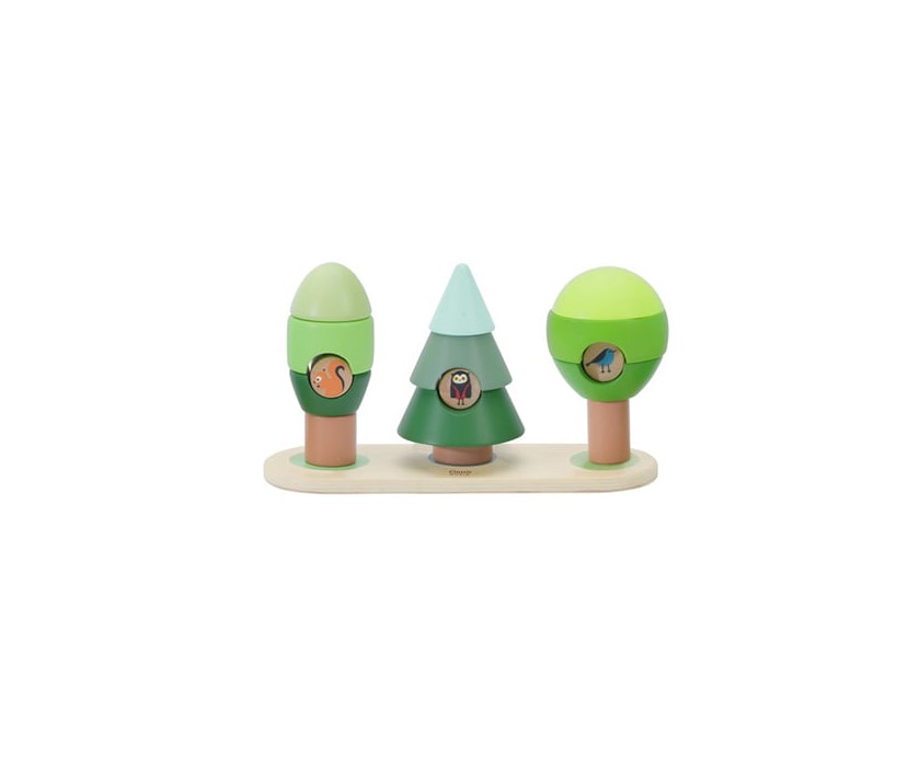 Regardez les trois arbres adorables! Il y a aussi 3 les animaux qui y vivent, Le hibou, le casse-noix et l'écureuil. Les enfants peuvent créer différentes formes et utiliser leur imagination pour créer de nouvelles espèces d'arbres. Les jouets empilables aident à développer la coordination œil-main.