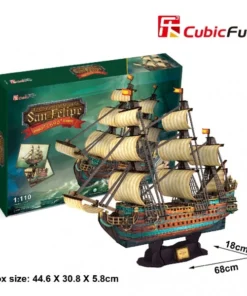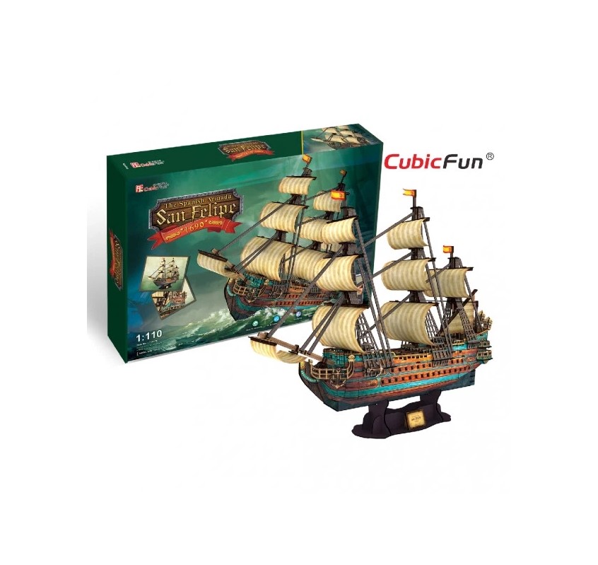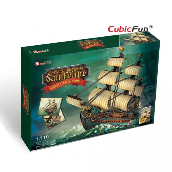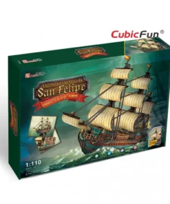 Puzzle 3D de Cubic Fun sur le thème de l'architecture mondiale et des navires. Το San Felipe είναι ένα από τα πιο θαυμαστά και όμορφα πλοία του 17ου αιώνα.
