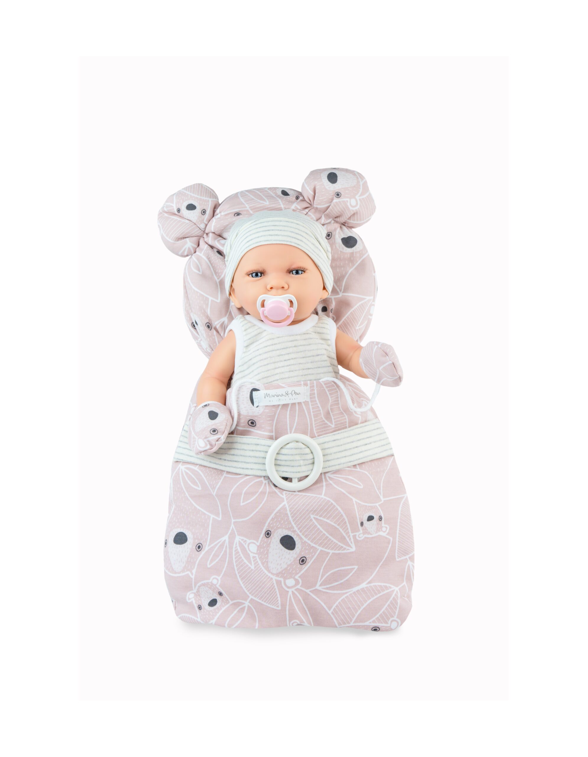 Bellissimo, Autentica bambola di Marina spagnola & Pau. Ha un corpo in vinile. Indossa abiti realizzati con tessuti di qualità ed è leggermente aromatizzata con profumo di vaniglia. Περιλαμβάνεται η πιπίλα και το sleeping bag.