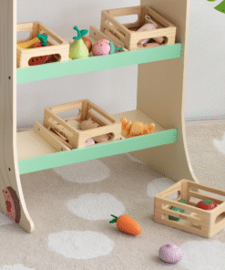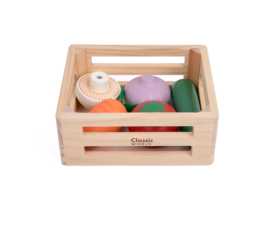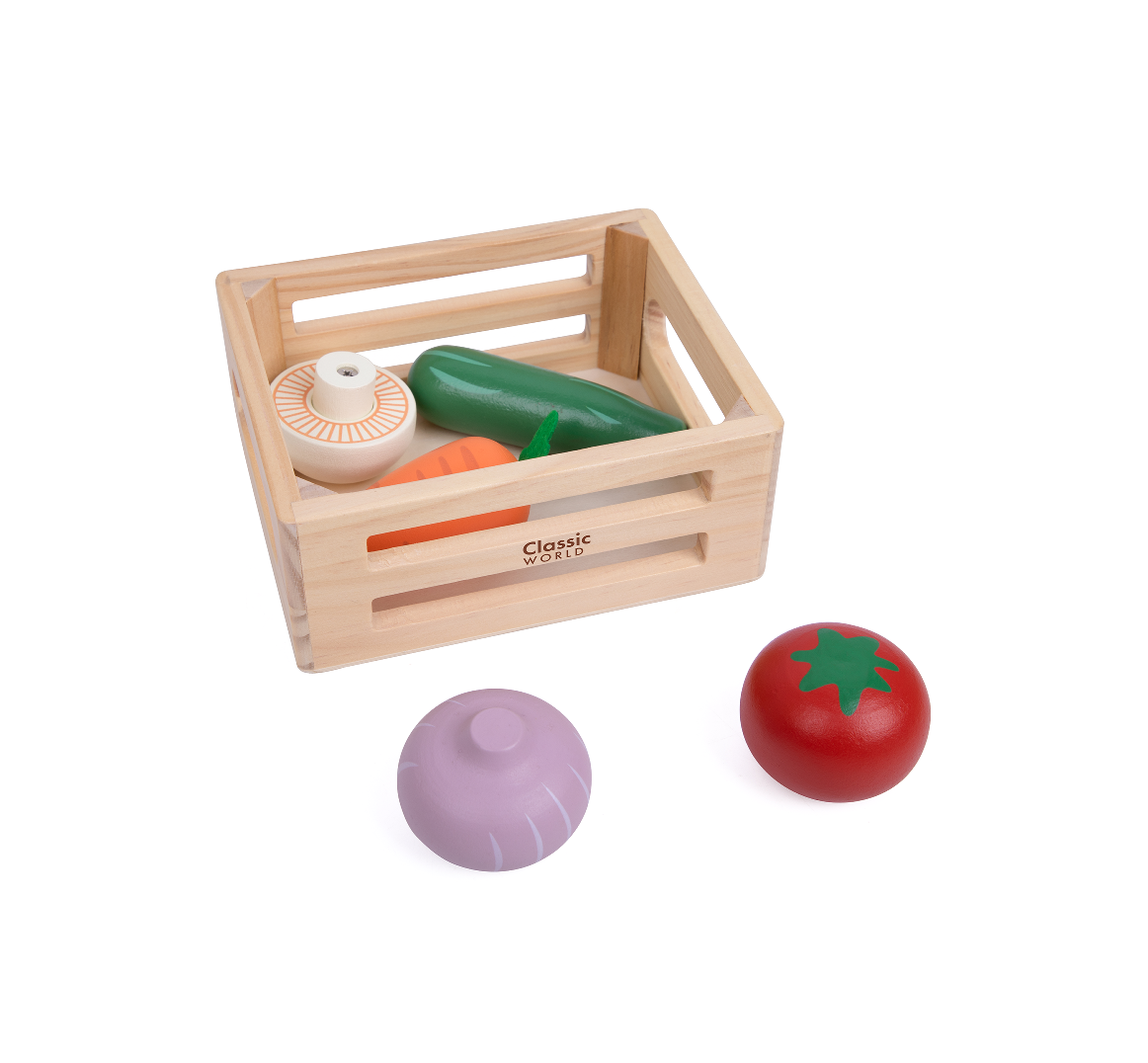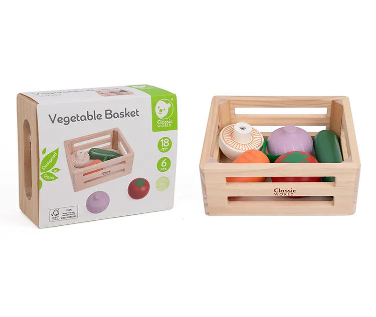 Αυτό το σετ με τα λαχανικά βοηθάει τα παιδιά να αναγνωρίζουν διαφορετικά χρώματα και λαχανικά ενώ παίζουν και να ενισχύσουν τις γνωστικές τους δεξιότητες. Τα παιδιά μπορούν να αποθηκεύσουν τα λαχανικά στο ξύλινο καλαθάκι στο τέλος του παιχνιδιού για να αναπτύξουν τη συνήθεια της αποθήκευσης.