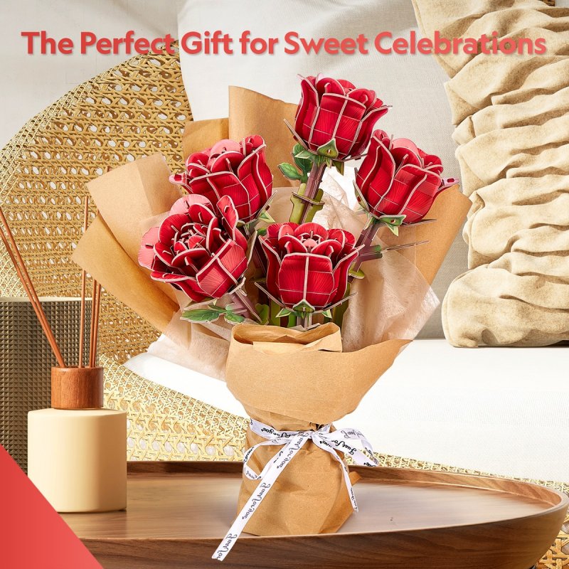 Ένα τριαντάφυλλο που διαρκεί για πάντα. Γιορτάστε την αγάπη, τη φιλία, την ευγνωμοσύνη με αυτή την όμορφη 3D ανθοδέσμη της Cubic Fun. Μια πραγματική ανθοδέσμη χωρίς να χρειάζεται νερό!