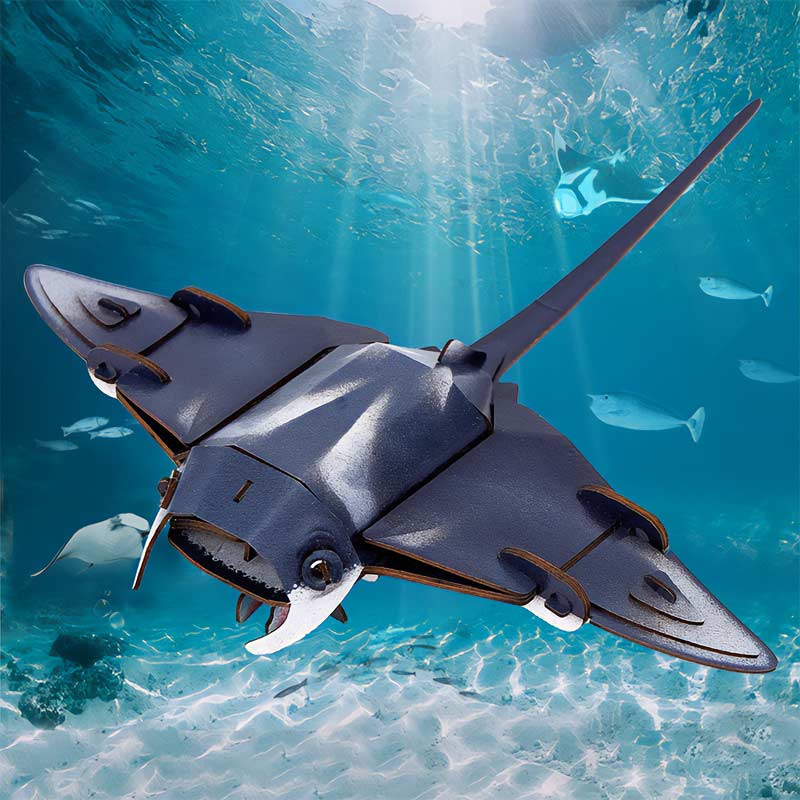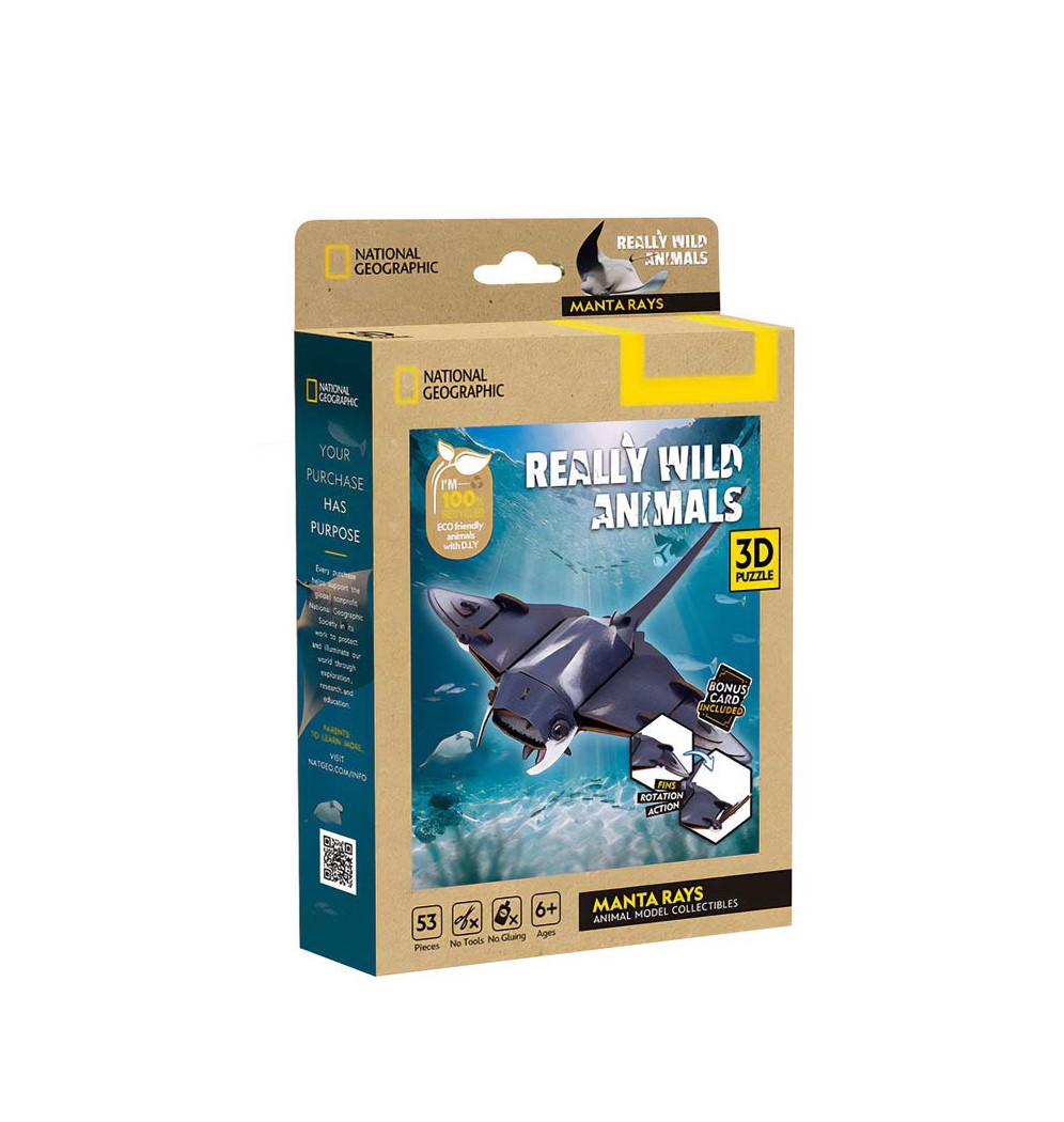 Εξερευνήστε τον ωκεανό από το σπίτι σας με αυτό το 3D παζλ σαλάχι της National Geographic. С участием 53 κομμάτια μπορείτε να συναρμολογήσετε ένα από τα πιο κομψά θαλάσσια πλάσματα στον πλανήτη. Καθώς συναρμολογείτε τα γιγάντια φτερά και την μακριά ουρά του, θα μάθετε για τη σημασία της προστασίας των θαλασσών μας και των ζώων που τις κατοικούν. Το κουτί περιλαμβάνει και μια συλλεκτική κάρτα με πληροφορίες, για να μάθετε περισσότερα για αυτόν τον ευγενικό γίγαντα του ωκεανού. Τα πτερύγιά του κινούνται, όταν ολοκληρωθεί το μοντέλο, κάνοντάς το να φαίνεται έτοιμο να γλιστρήσει στο νερό. Με κάθε κομμάτι βοηθάτε στην οικοδόμηση ενός μέλλοντος, όπου η φύση και οι ωκεανοί προστατεύονται πάντα.
