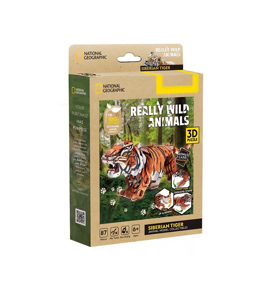 3D παζλ τίγρη της Σιβηρίας σε συνεργασία με την National Geographic. Τα παιδιά μπορούν όχι μόνο να συναρμολογήσουν την επιβλητική φιγούρα της τίγρης της Σιβηρίας αλλά και να μάθουν για την σημασία της προστασίας της φύσης. Το κουτί περιλαμβάνει και μια συλλεκτική κάρτα με πληροφορίες για τη ζωή της τίγρης της Σιβηρίας. Η ουρά και τα πόδια της τίγρης διαθέτουν κίνηση για μια πιο ρεαλιστική εμπειρία.