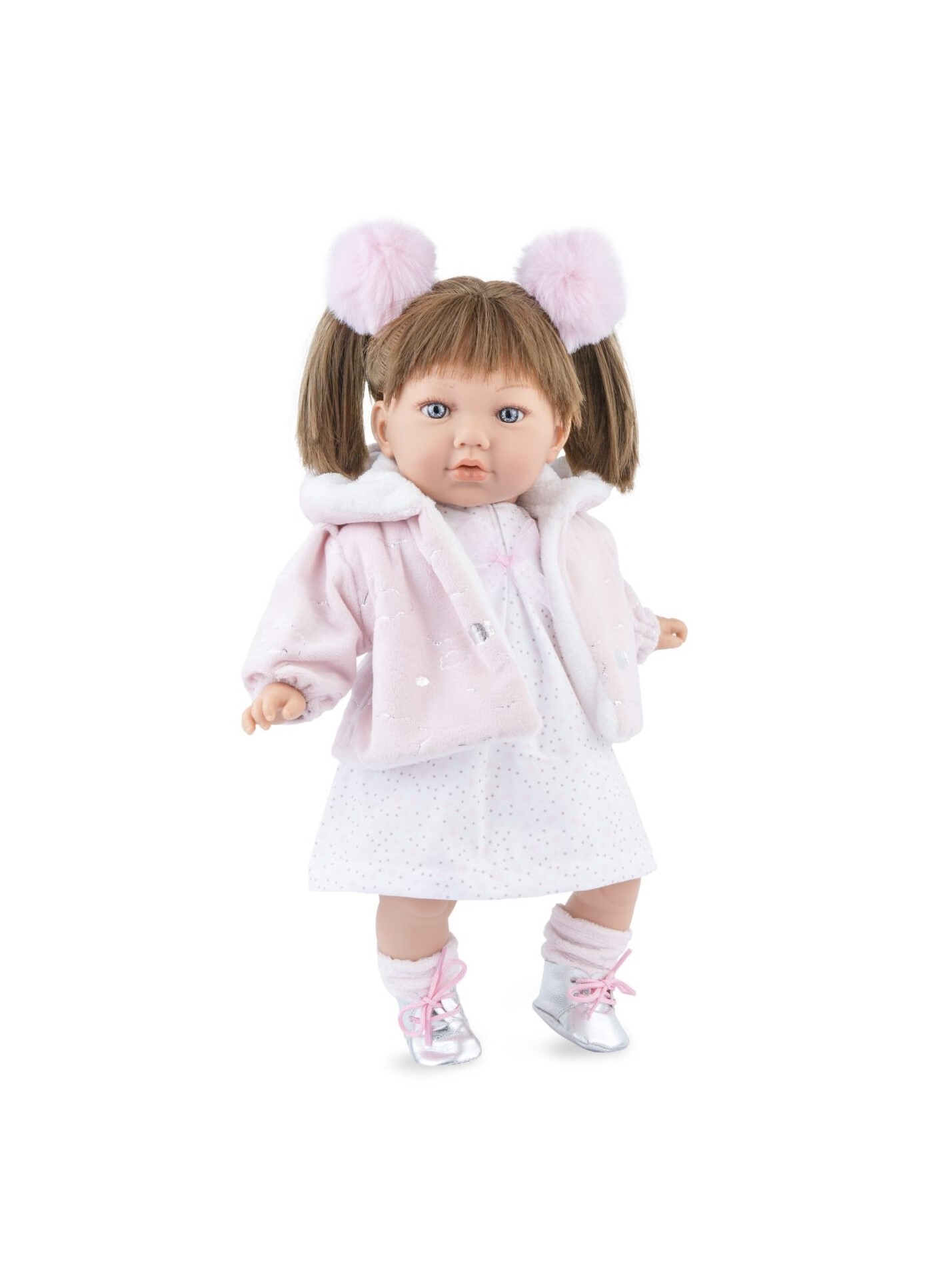 Όμορφη, αυθεντική ισπανική κούκλα Marina & Pau. Έχει μαλακό σώμα με κεφάλι, χέρια και πόδια από βινύλιο. Φοράει ρούχα από ποιοτικά υφάσματα και είναι ελαφρώς αρωματισμένη με άρωμα βανίλιας.