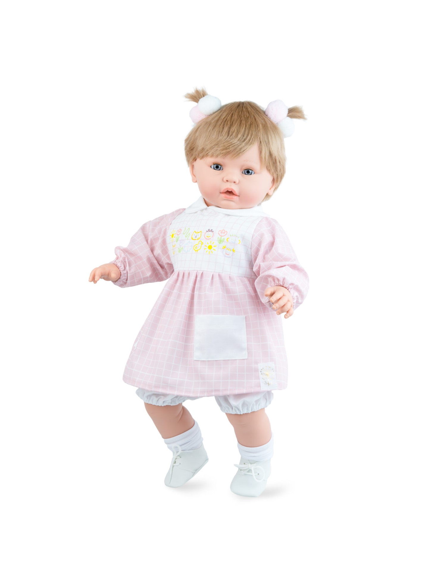 Όμορφη, αυθεντική ισπανική κούκλα Marina & Pau. Έχει μαλακό σώμα με κεφάλι, χέρια και πόδια από βινύλιο. Φοράει ρούχα από ποιοτικά υφάσματα και είναι ελαφρώς αρωματισμένη με άρωμα βανίλιας. Περιλαμβάνεται η πιπίλα.