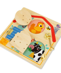Το ξύλινο ταμπλό με κλειδαριές της Tooky Toy είναι ένα εξαιρετικό εκπαιδευτικό παιχνίδι που συνδυάζει τη διασκέδαση και τη μάθηση με έναν συναρπαστικό τρόπο. Διαθέτει 3 πόρτες, οι οποίες είναι κλειδωμένες με κλειδαριές. Πίσω από κάθε πόρτα κρύβεται μια ευχάριστη έκπληξη – η εικόνα ενός χαριτωμένου ζώου. Αυτό το διαδραστικό παιχνίδι ενθαρρύνει τα παιδιά να αναπτύξουν βασικές δεξιότητες. Το ξεκλείδωμα, το γύρισμα, το κούμπωμα απαιτούν λεπτές κινητικές δεξιότητες και ικανότητες επίλυσης προβλημάτων. Είναι ένα παιχνίδι για την ανάπτυξη της επιδεξιότητας, του συντονισμού ματιού – χεριού και των γνωστικών δεξιοτήτων, ενώ παράλληλα καλλιεργεί την περιέργεια και τη φαντασία.