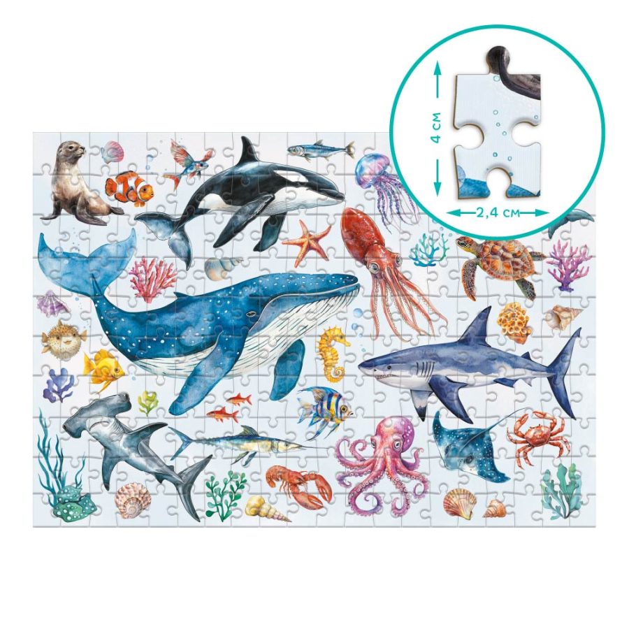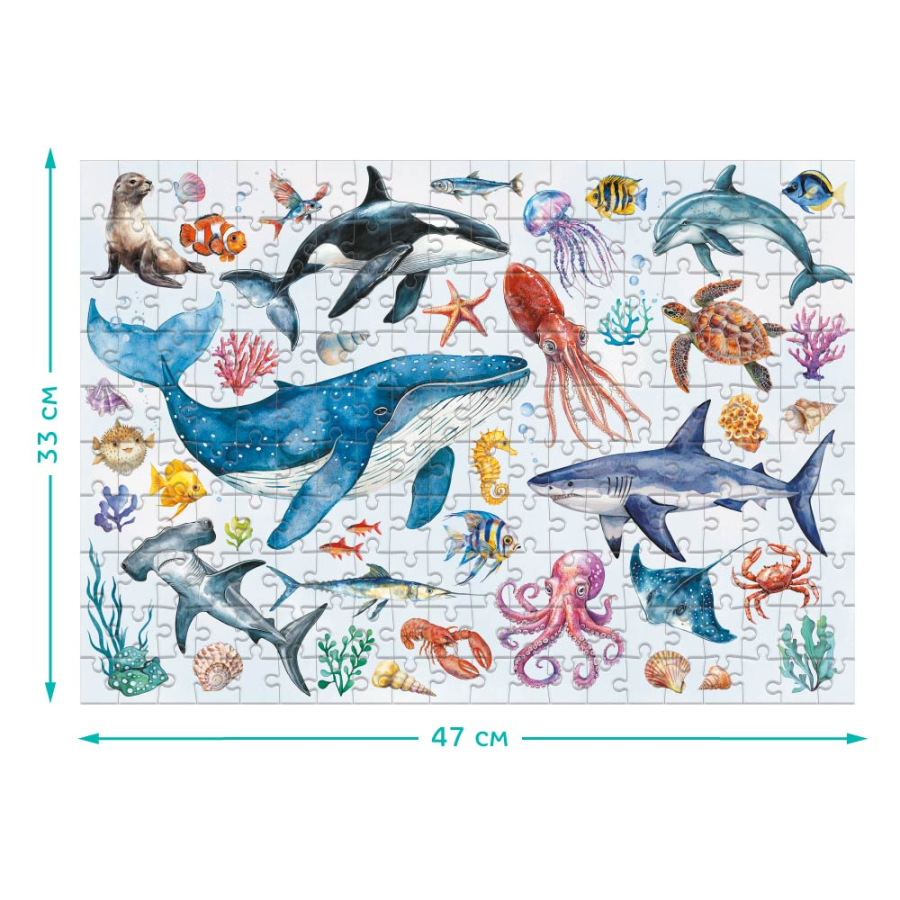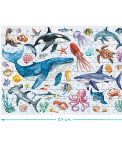 Το παζλ « Ζώα του Ωκεανού » αποκαλύπτει την ομορφιά του υποβρύχιου κόσμου: δελφίνια, φάλαινες, χταπόδια, κοράλλια κ.α. Αποτελεί ένα χρήσιμο δώρο για παιδιά που ενδιαφέρονται για τη φύση, τα ζώα και λατρεύουν να συναρμολογούν παζλ.
