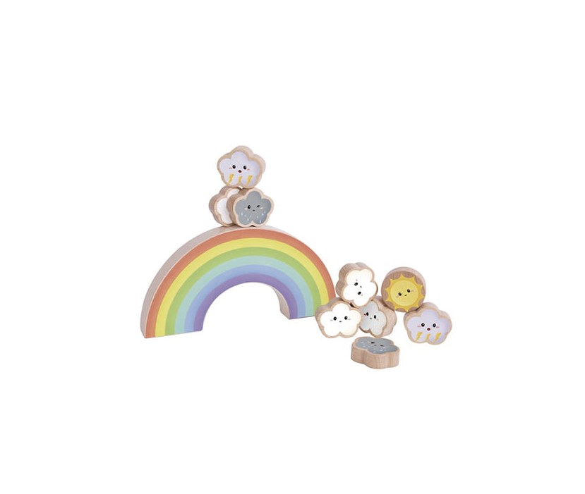 Το ουράνιο τόξο με τα 7 του χρώματα είναι μια όμορφη, πολύχρωμη γέφυρα. Τα συννεφάκια καθορίζουν τον καιρό. Όταν το ουράνιο τόξο είναι ανάποδα τα παιδιά μπορούν να στοιβάξουν τα συννεφάκια και να μάθουν για τα καιρικά φαινόμενα. Τα παιχνίδια στοίβαξης συμβάλλουν στην ανάπτυξη του συντονισμού χεριού-ματιού.