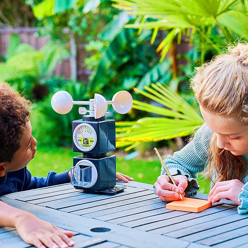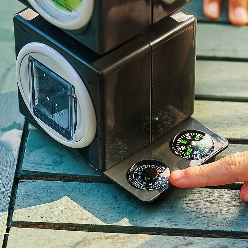 Βιώνουμε τον καιρό κάθε μέρα καθώς βγαίνουμε από τα σπίτια μας, νιώθοντας αν κάνει κρύο ή ζέστη, αν φυσάει ή είναι ήρεμος, αν είναι ξηρός ή βρέχει. Αυτός ο μετεωρολογικός σταθμός μας επιτρέπει να μετράμε αυτές τις συνθήκες σαν πραγματικός μετεωρολόγος…σύντομα θα είστε ειδικός στην οικογένειά σας! Ο μετεωρολογικός σταθμός είναι εύκολος στην εγκατάσταση, ώστε να μπορείτε να παρακολουθείτε τις καθημερινές συνθήκες, να εκτελείτε πειράματα, να καταγράφετε μετρήσεις και να μαθαίνετε υπέροχα στοιχεία σχετικά με τον καιρό. Αυτός ο μετεωρολογικός σταθμός 5 σε 1 περιλαμβάνει: