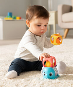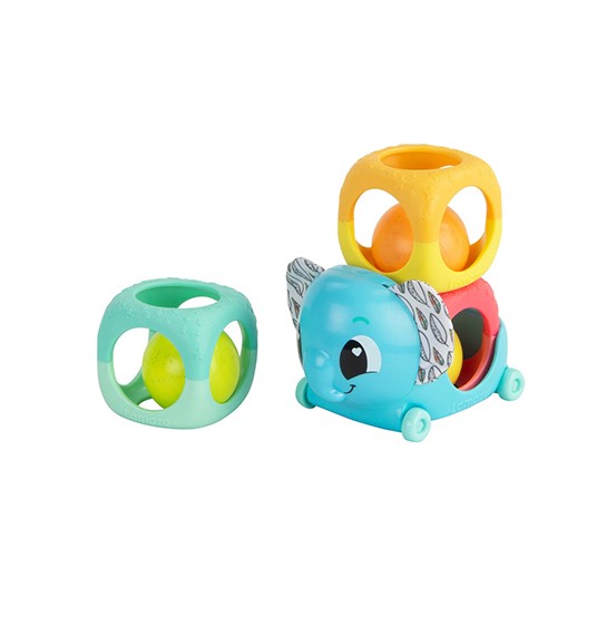 Παιχνίδι δραστηριότητας με όμορφα, έντονα χρώματα που προσκαλεί το μωρό να εξερευνήσει και να ανακαλύψει. Τα κυβάκια είναι κουδουνίστρες με ήχο που τραβάει το ενδιαφέρον αλλά είναι έτσι σχεδιασμένα ώστε να μπορούν να στοιβαχτούν από οποιαδήποτε πλευρά τους πάνω στο ελεφαντάκι. Το μωρό μπορεί να αναπτύξει τις κινητικές του δεξιότητες και να χρησιμοποιήσει το ελεφαντάκι σαν όχημα, καθώς έχει ροδάκια και γλιστράει σε όλες τις επιφάνειες. Είναι φτιαγμένο έτσι ώστε να μπορούν να το κρατήσουν μικρά χεράκια.