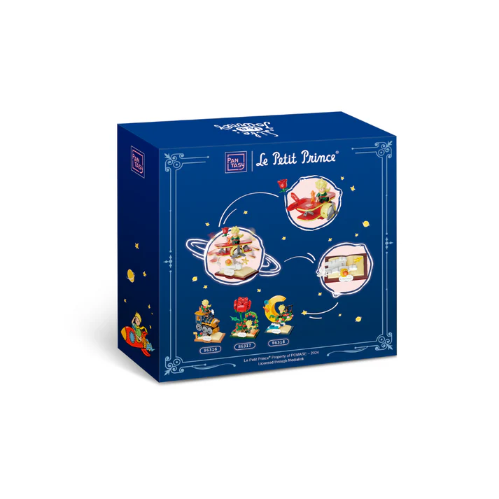 Το σετ κατασκευής με τουβλάκια σας προσκαλεί να ανακαλύψετε τον ονειρικό κόσμο του Μικρού Πρίγκιπα του Antoine de Saint-Exupery. Ένα κόκκινο αεροπλάνο αναδύεται από ένα ανοιχτό βιβλίο, συνοδευόμενο από το τριαντάφυλλο και την αλεπού, σύμβολα φιλίας και αγάπης. Στο κέντρο βρίσκεται ο Μικρός Πρίγκιπας. Μια παραμυθένια σκηνή που συνδυάζει την αίσθηση της περιπέτειας, της νοσταλγίας και της φαντασίας.